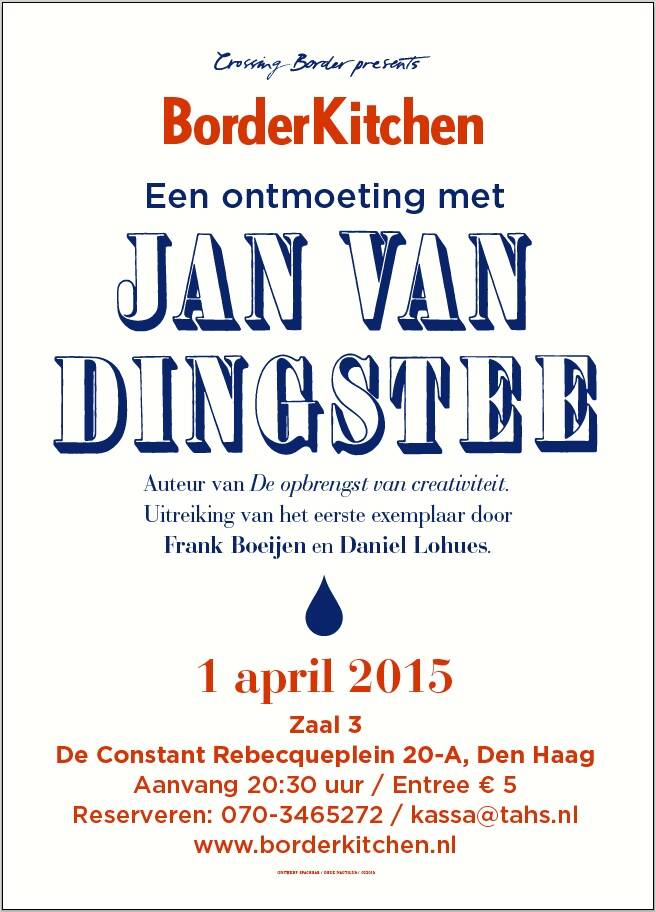 Jan van Dingstee werkt al 30 jaar met creatieve mensen. Meestal op intensieve en zeer persoonlijke wijze, als klankbord of als gids. Naast een grote dosis lange ervaring op niveau (Bertelsmann/Sony, Mojo Concerts/ Live Nation) deed hij ruim drie jaar onderzoek naar de meest uiteenlopende aspecten van het fenomeen creativiteit en gaf zijn visie vorm in het boek “De opbrengst van creativiteit”.